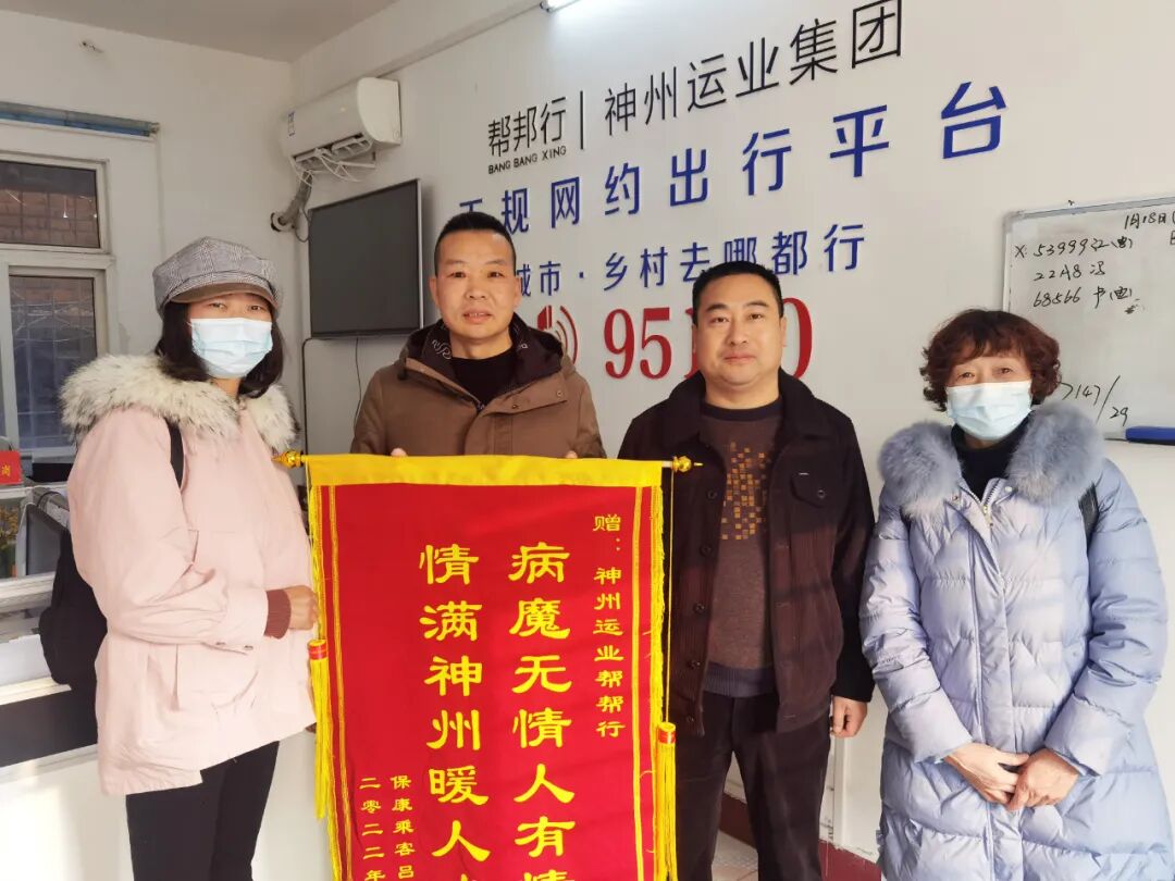 2022年1月18日早上9点左右,“神州运业帮邦行”意外收到一面锦旗。锦旗写有“病魔无情人有情 情满神州暖人心”,由襄阳市保康县乘客吕女士携女儿一起送来,旨在表达对“神州运业帮邦行”的感激、感恩之情。