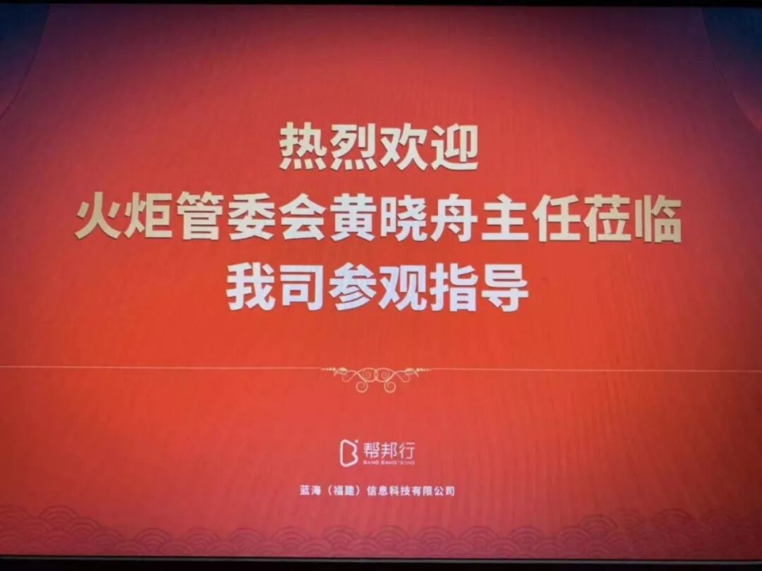近日,厦门火炬管委会黄晓舟主任及成员一行到帮邦行总部进行参观指导,并以平台业务发展进行座谈交流,帮邦行总经理傅顺开先生及联合创始人王成毅先生陪同座谈。