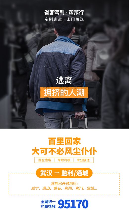 省客驾到·帮邦行正式上线后备受瞩目,同时也获得了大量用户的肯定,已上线的线路出现了供不应求的状态,为此,省客驾到·帮邦行将在1月份中旬重磅推出【武汉⇋通城】、【武汉⇋监利】、【武汉⇋荆门】、【武汉⇋宜城】、【武汉 ⇌ 咸宁】、【武汉 ⇌ 通山】、【武汉 ⇌ 黄石】、【武汉 ⇌ 荆州】多条客运专线。